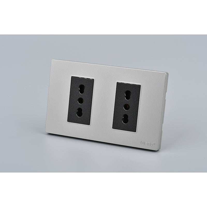 Tomacorriente doble 16A certificado SEC. Conexión segura para dos equipos de mayor consumo en proyectos eléctricos en Chile.